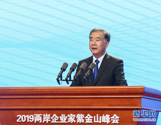 2019兩岸企業家紫金山峰會11月4日在江蘇南京舉行。中共中央政治局常委、全國政協主席汪洋出席並發表演講。