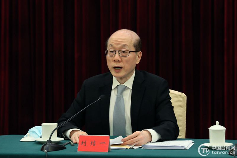 中共中央臺辦、國務院臺辦主任劉結一在兩岸領導人歷史性會晤5周年座談會上講話。(中國臺灣網 尹賽楠 攝)