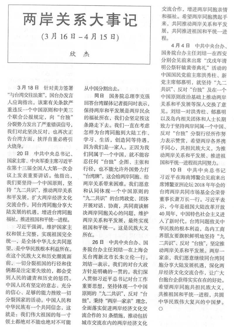 兩岸關係大事記(2017年12月16日-2018年1月15日)