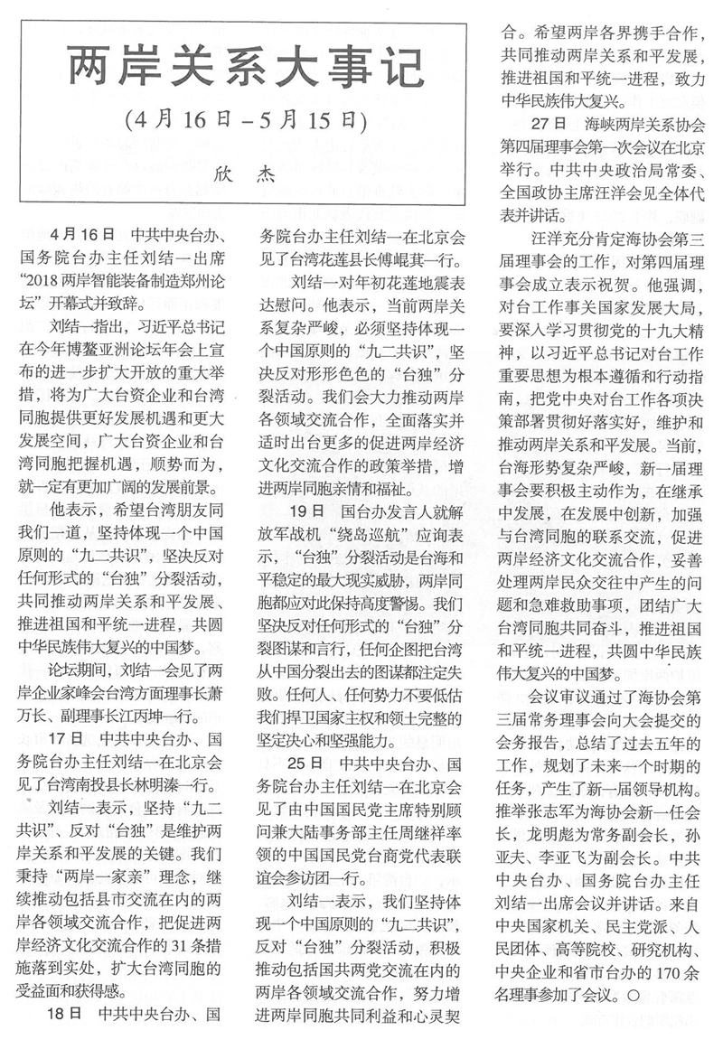 兩岸關係大事記(2017年12月16日-2018年1月15日)