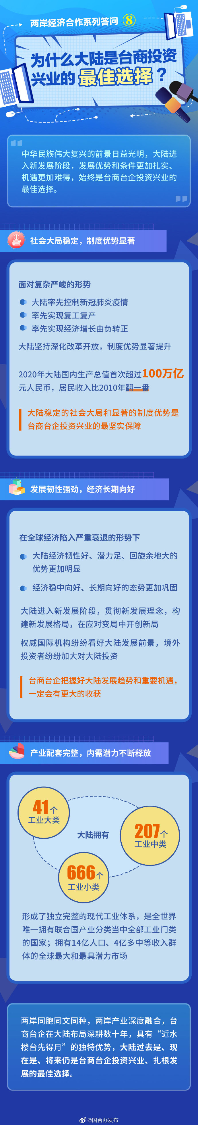 兩岸經濟合作係列答問⑧:為什麼大陸是臺商投資興業的最佳選擇?