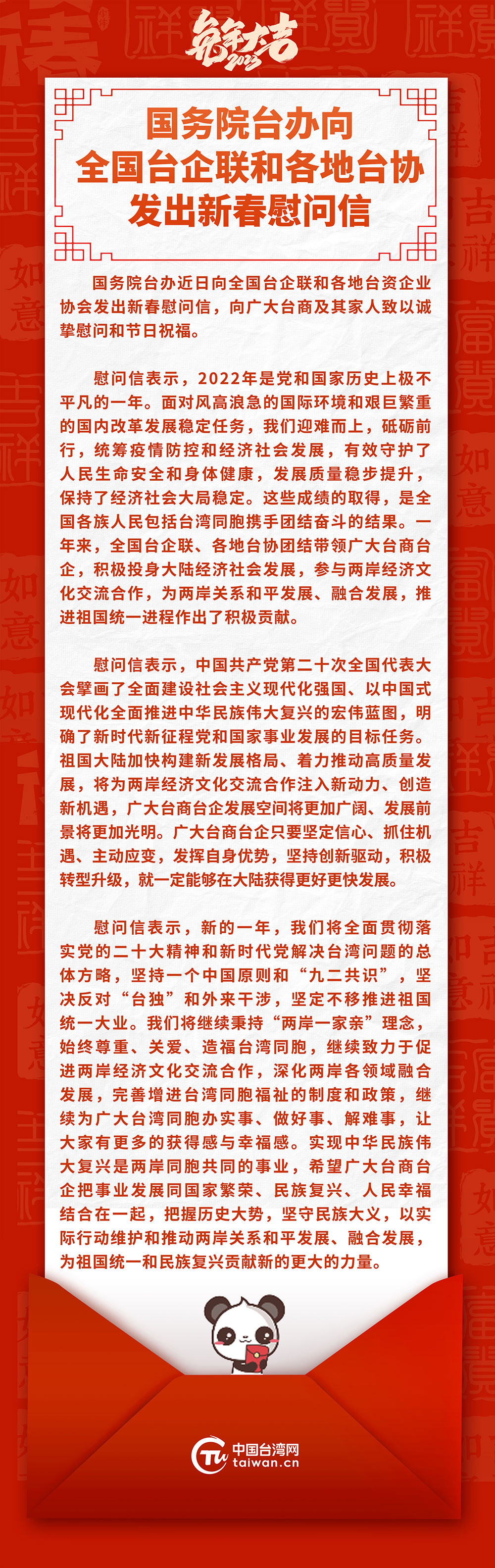 圖解:國務院臺辦向全國臺企聯和各地臺協發出新春慰問信