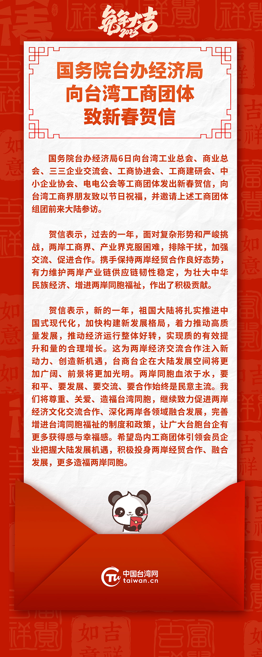 圖解:國務院臺辦經濟局向臺灣工商團體致新春賀信