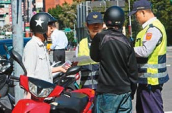 臺灣“立法院”昨日初審通過,刪除過去未帶行車執照、駕照須開罰300至600的規定。圖為警方取締摩托車違規。圖片來源:臺灣《中國時報》