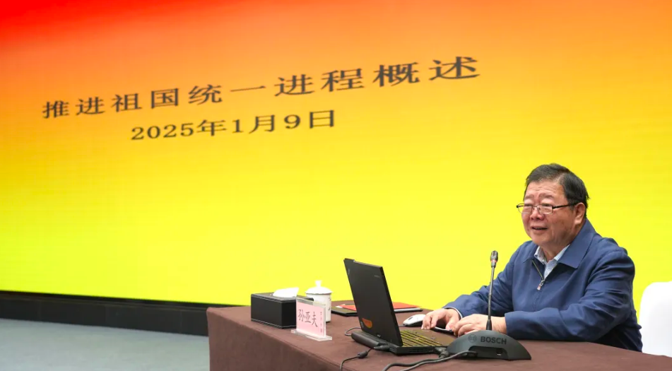 海峽兩岸關係協會副會長、全國臺灣研究會副會長孫亞夫作專題講座。(圖片來源:“北京臺聯”微信公眾號)