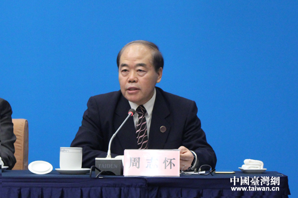 全國臺灣研究會前執行副會長兼秘書長周志懷作第六屆理事會工作報告。(中國臺灣網 張潔 攝)