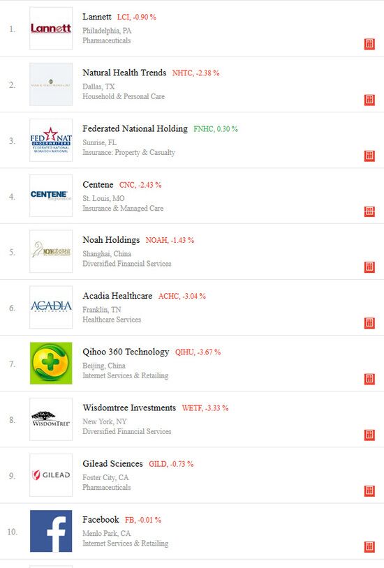《財富》雜志于2015年8月20日發布了最新的美股“100家增長最快的公司”排行榜,今年,5家中國在美上市公司上榜,分別是:諾亞財富、奇虎360、正保遠程教育、好未來、搜房網。此外,社交媒體巨頭Facebook首次登上榜單。