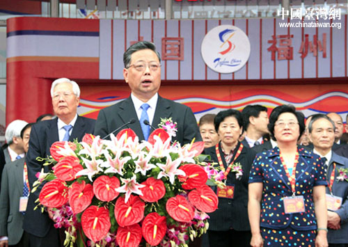 18日,福建省省長在第十一屆海峽兩岸經貿交易會開幕式上致辭。當天上午,第十一屆海峽兩岸經貿交易會(簡稱“海交會”)在福州開幕。 (中國臺灣網 鐘寶華 攝)