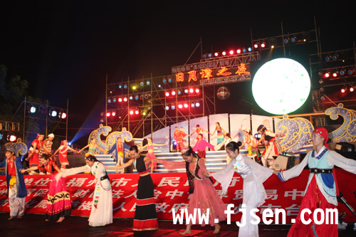 東南網5月18日訊 (記者 王秀欽) 淺淺海峽灣,濃濃兩岸情,絲弦樂器,擊鼓跳舞,福州溫泉公園廣場今晚匯聚成一片歡樂的海洋,“日月潭之夜”文藝聯歡晚會在這里盛情上演。