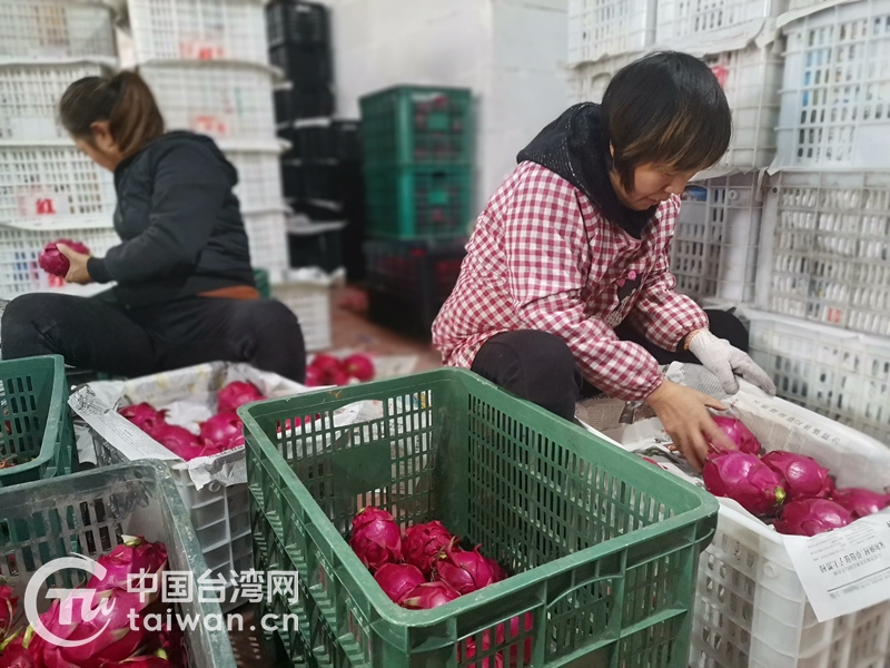 “老家的同行說,因為效益不好,他們已經把樹砍掉改行了,而在大陸這邊,市場很大,我種的火龍果一點都不愁賣。”他說。