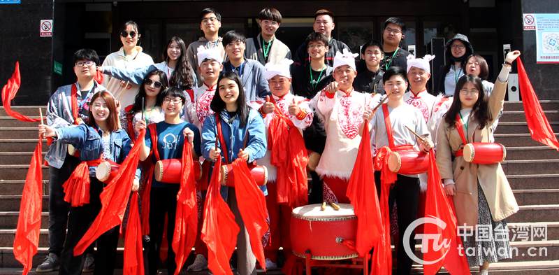 與腰鼓表演者合影(圖片來源:陜西省臺辦)