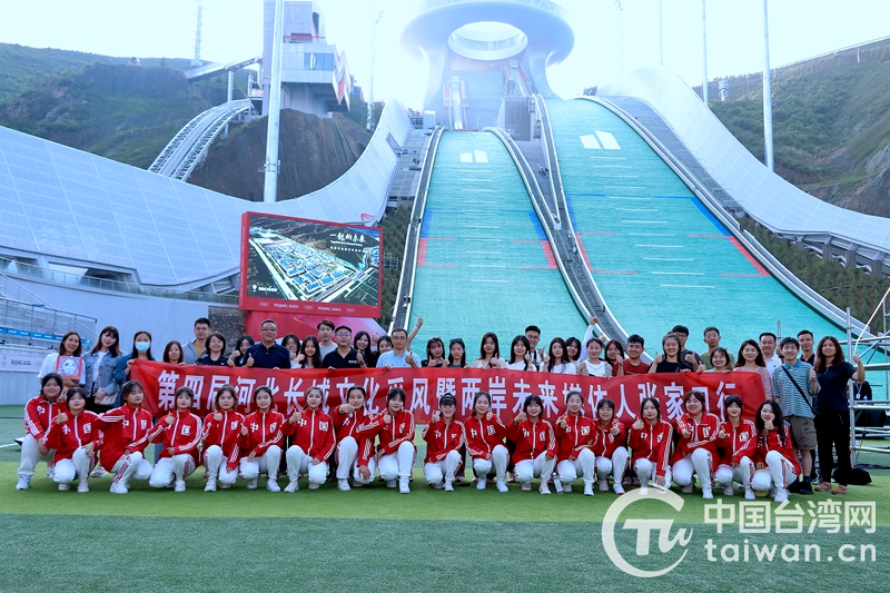 國家滑雪跳臺中心“雪如意”前合影留念(圖片來源:河北省臺辦)