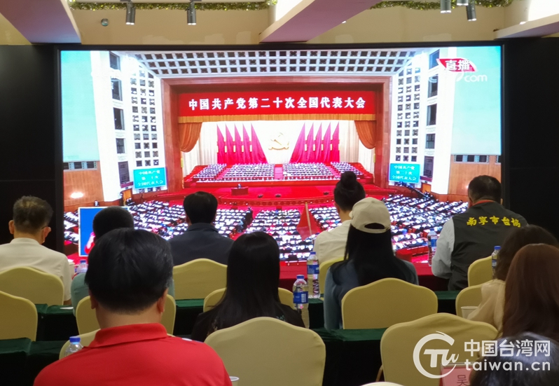 南寧市臺灣同胞投資企業協會組織在邕臺胞集中收看中國共產黨第二十次全國代表大會開幕會(圖片來源:廣西臺辦)