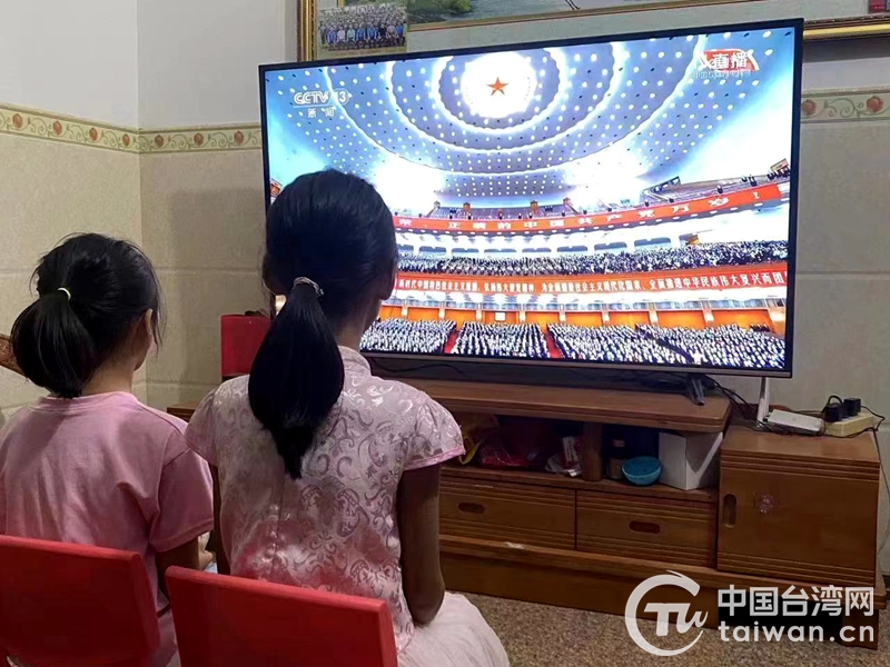 小臺胞在收看中國共產黨第二十次全國代表大會開幕會(圖片來源:廣西臺辦)