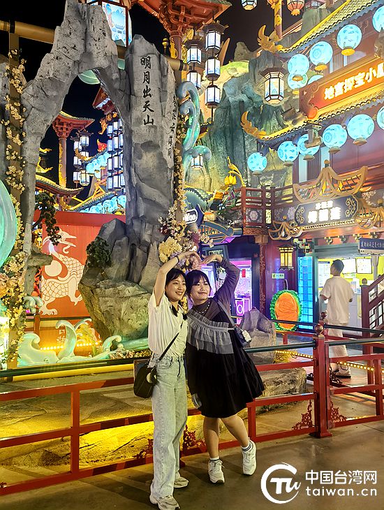 臺灣青年打卡明月山海間不夜城。(中國臺灣網發)