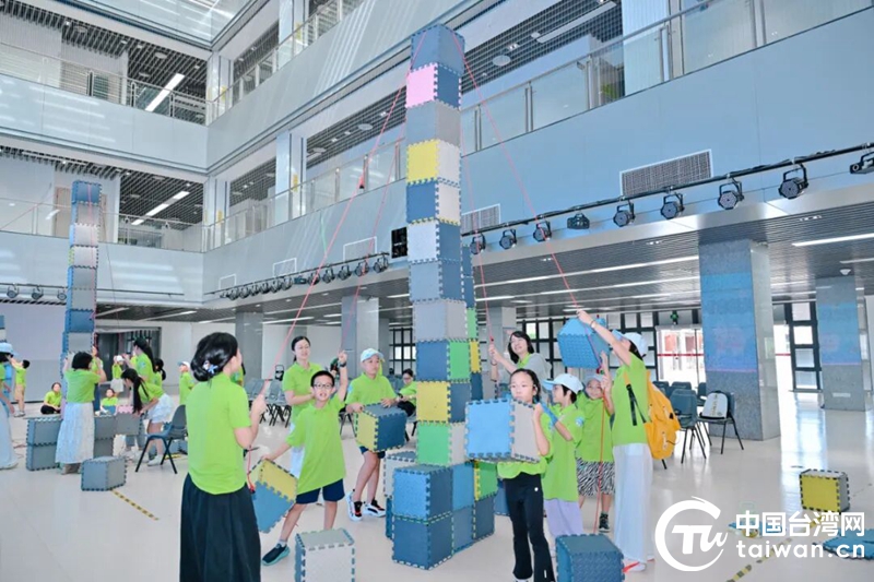 營員們組隊參與“協作築塔”挑戰賽(中國臺灣網發)