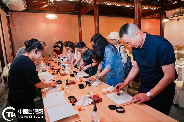在甬臺胞臺屬體驗非遺朱砂拓印技藝。(中國臺灣網發)