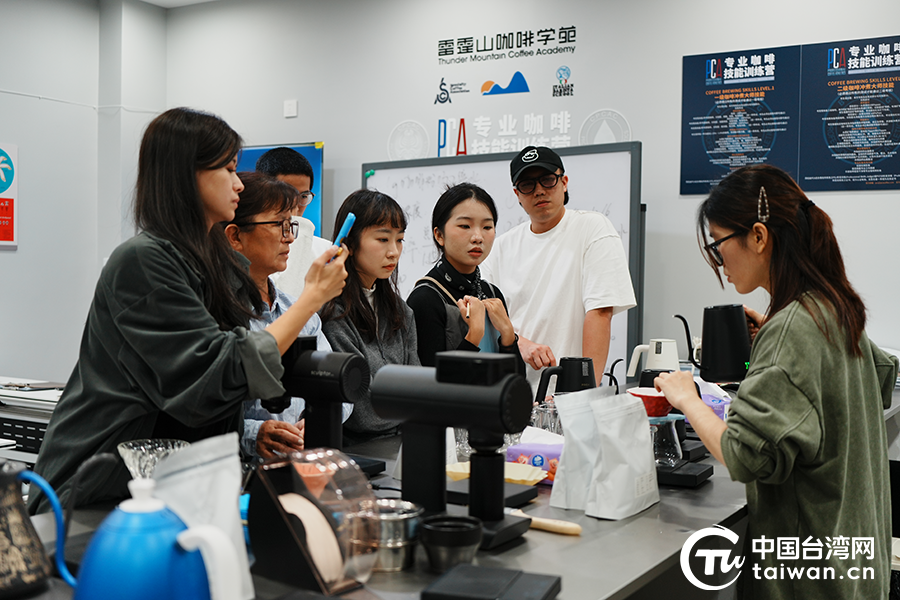 兩岸青年進行咖啡技藝交流。(中國臺灣網發)