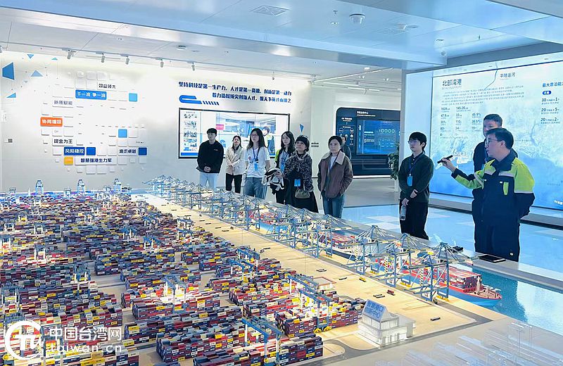 臺灣青年到北部灣港智慧港口了解欽州門戶樞紐發展機遇。(中國臺灣網發)