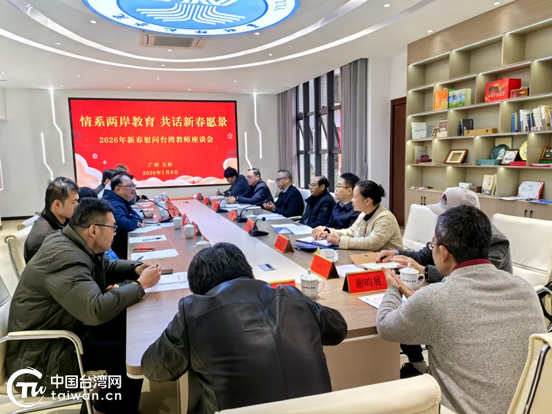 1月8日,玉林市在玉林師范學院舉辦2026年新春慰問臺灣教師座談會,市校領導與臺灣教師代表歡聚一堂,共敘情誼、共商發展、共迎佳節。