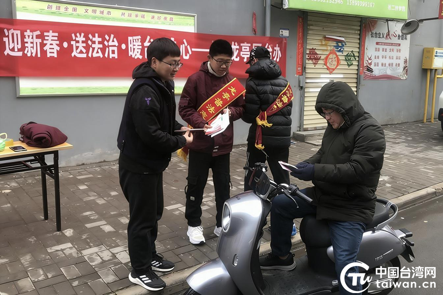 中國臺灣網1月13日訊 為切實保障在汴臺胞臺屬新春期間合法權益,讓法治溫暖護航團圓年,近日,開封市龍亭區臺辦聯合區司法局、北書店街道辦事處,共同走進臺胞臺屬聚居社區開展“迎新春·送法治·暖臺心”專項普法活動,吸引包含臺胞臺屬在內的轄區群眾共計50余人參與。
