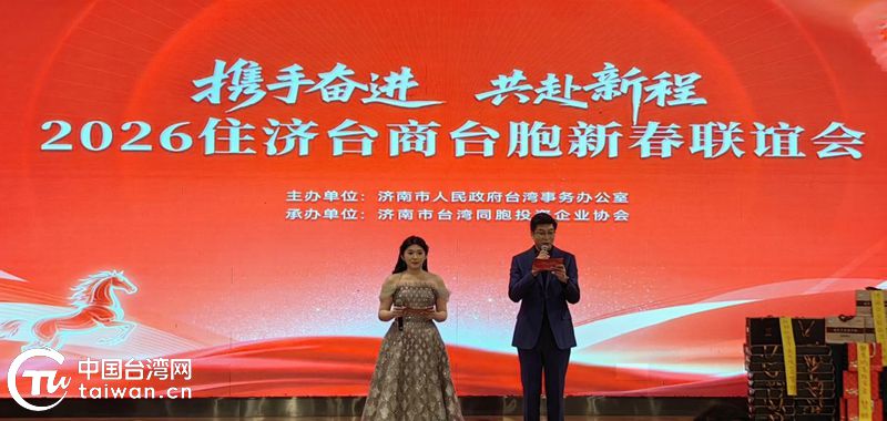 中國臺灣網1月28日訊 1月24日,由濟南市臺辦主辦、濟南市臺協會承辦的“攜手奮進 共赴新程”2026住濟臺商臺胞新春聯誼會成功舉辦。山東省臺辦一級巡視員王清玉,濟南市原副市長、市臺協會常務副會長尹清忠,濟南市臺辦主任趙博、副主任李學忠,濟南臺協會會長王克璋出席,200余位住濟臺商臺胞參加活動。