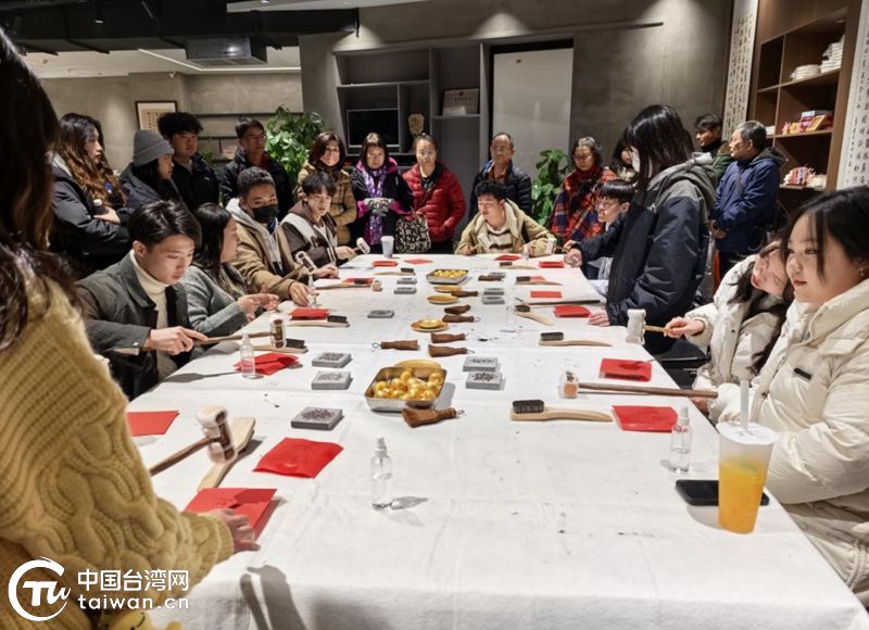 兩岸青年體驗拓印。(中國臺灣網發)