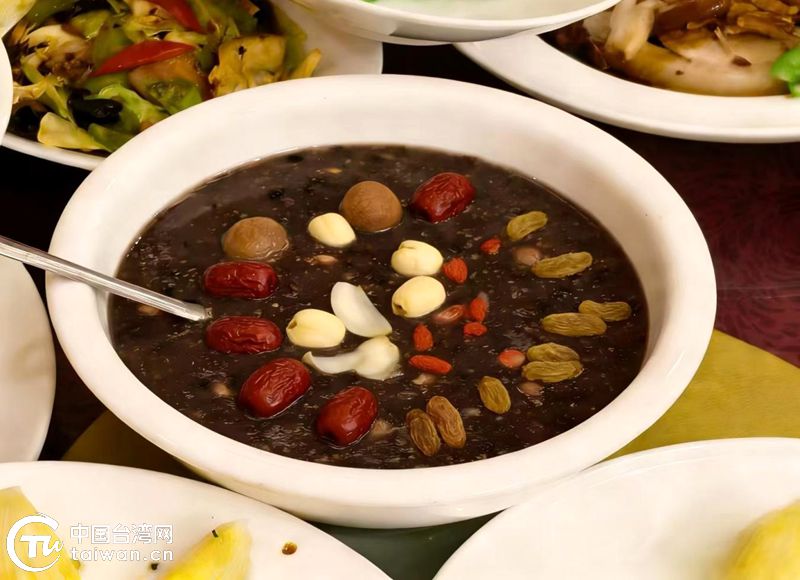 開營當日晚餐中熱氣騰騰的臘八粥。(中國臺灣網發)