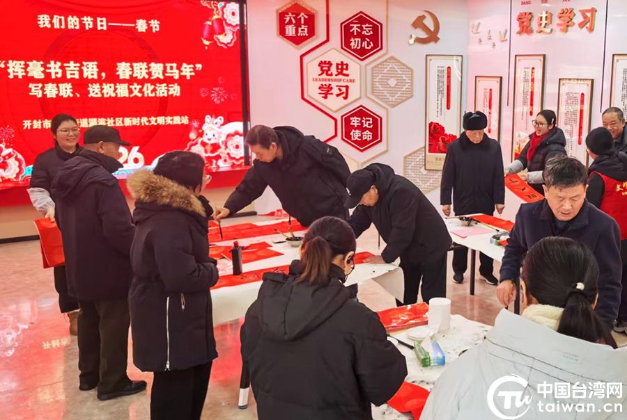 中國臺灣網2月3日訊 為傳承中華優秀傳統文化,營造歡樂祥和的新春氛圍,近日,開封市城鄉一體化示范區臺辦組織開展“揮毫書吉語 春聯賀馬年”文化交流活動,邀請轄區臺胞臺屬和群眾參加,讓大家在紅紅火火的年味兒中感受傳統文化魅力,共迎新春佳節。