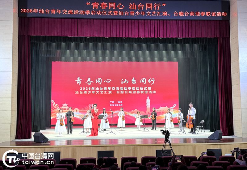 中國臺灣網2月4日訊 2月1日,由汕頭市臺灣事務局主辦,汕頭文化藝術學校、臺灣夢想起飛樂團、臺灣穎樂室內樂團承辦的“青春同心 汕臺同行”2026年汕臺青年交流活動季啟動儀式暨汕臺青少年文藝匯演、在汕臺胞迎春聯誼活動舉行。團市委、市青聯等汕頭青年代表,市臺盟、市臺聯、市臺商協會等在汕臺胞臺商代表,與臺灣夢想起飛樂團、南投縣青少年藝術團的臺灣同胞齊聚一堂,以文藝為媒架起交流橋梁,共促汕臺青年連心聯誼、攜手同行。