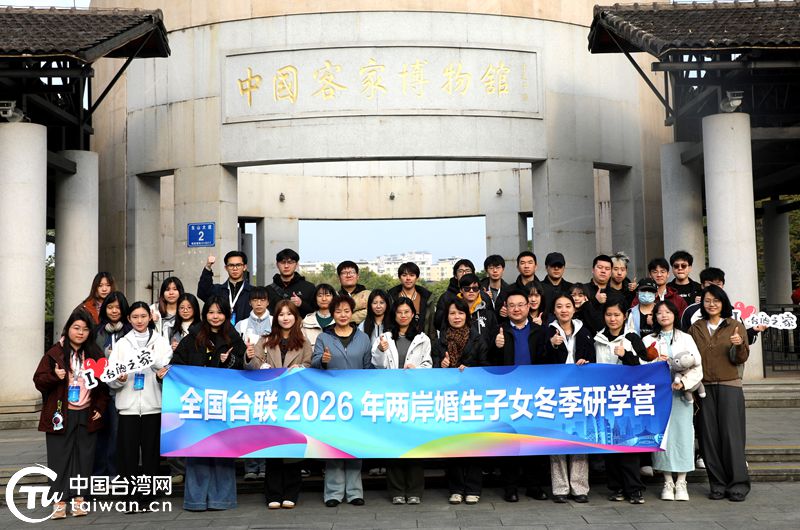 全國臺聯2026年兩岸婚生子女冬季研學營一行在海峽兩岸交流基地交流示范點——中國客家博物館合影留念。(中國臺灣網發)