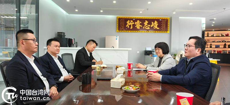 方濤一行與東莞臺商協會會長、信易集團總經理吳峻睿座談。(中國臺灣網發)