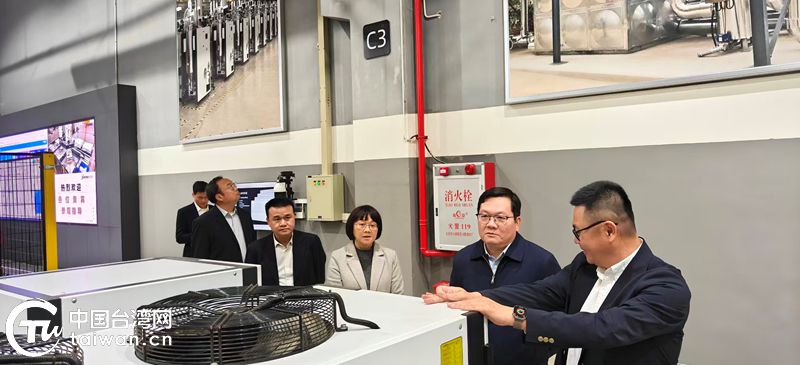 方濤一行參觀信易電熱機械有限公司智能化生產流程。(中國臺灣網發)