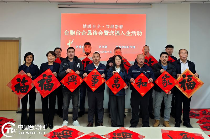 中國臺灣網2月6日訊 2月4日,天津市寶坻區舉辦臺胞臺企懇談會,並開展送福入企活動。聯恆工業、林德英利、英利模具、法藍克玻璃、翔太水族等臺資企業負責人以及臺胞代表等參加活動,寶坻區委常委劉蘭鳳出席活動。