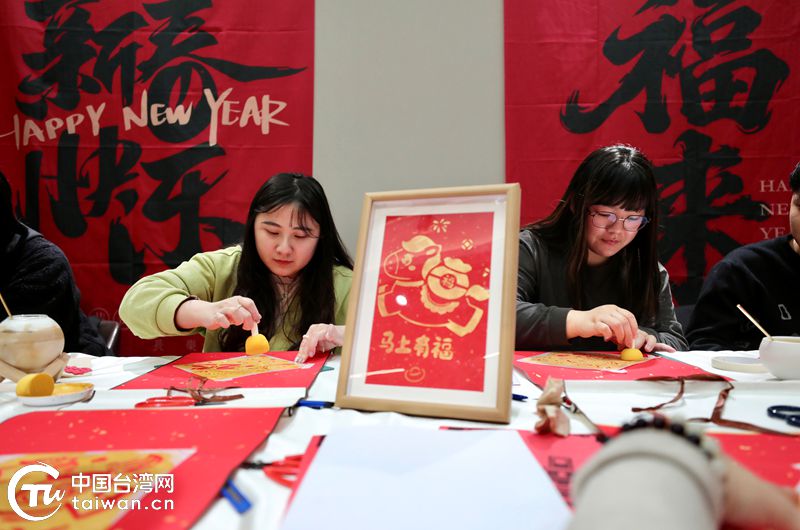 當日下午,南塘老街的倣古街巷間年味漸濃。臺青們先後參與馬年臺歷拓印、新春福字書寫、寧波湯圓手作、馬年主題剪紙等特色年俗活動,在一筆一畫、一捏一揉中,解鎖年味的多樣表達。“小時候我們在臺灣都會練習書法,長大後就很少再觸碰筆墨了。今天能親手寫下新春福字,還能帶回家張貼,這份儀式感特別珍貴,是很有意義的紀念。”林姓臺青手持剛寫好的福字,臉上滿是笑意。