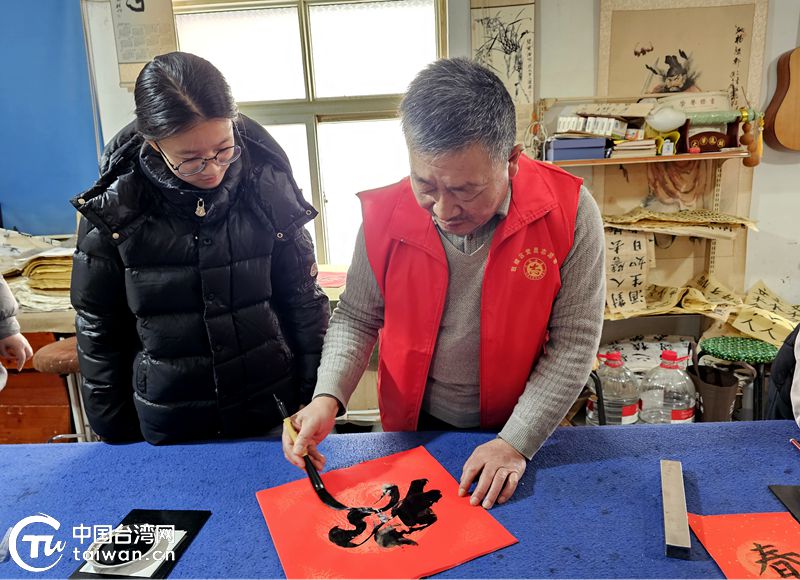 活動現場紅紙鋪展、翰墨飄香。來自兩岸的書寫者並肩執筆,揮毫潑墨,筆走龍蛇。一副副寓意吉祥的春聯在行雲流水間誕生,一個個飽滿有力的“福”字躍然紙上。橫豎撇捺承載著對新春的共同期盼,紅紙黑墨凝結著中華文化一脈相承的情感記憶。