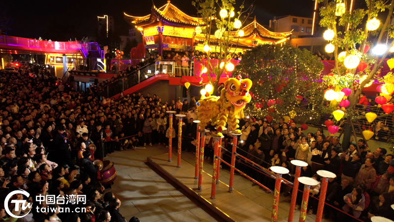 華燈初上,七夕天街一片璀璨。福門巍峨矗立,古街張燈結彩,橘色魚燈輕搖曼舞,紅色飄帶橋如夢似幻,明清古建築的古韻與現代燈光設計交相輝映,濃鬱的元宵年味撲面而來。在鄖西縣臺辦的組織下,臺胞及親屬們漫步天街,循著熱鬧的人聲,先後體驗了醒獅花燈巡展、非遺文藝匯演等特色民俗活動,近距離感受鄖西七夕文化與傳統元宵習俗的融合之美。智能機器人舞蹈的新潮演繹,讓大家直呼新奇;非遺手作的匠心巧思,更讓大家沉浸式領略中華優秀傳統文化的魅力。