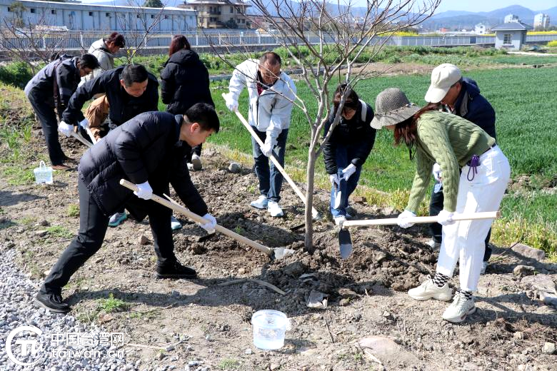 隨後,大家分工協作,扶苗、填土、踩實、澆水,每一個環節都認真細致、配合默契。一棵棵樹苗扎根沃土,承載著兩岸同胞同根同源、同心同向的美好期盼。