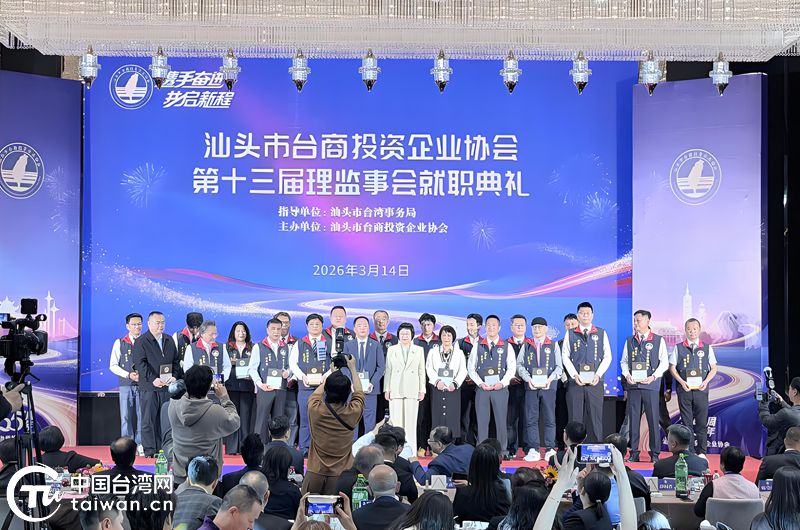 中國臺灣網3月17日訊 3月14日,以“攜手奮進 共啟新程”為主題的汕頭市臺商投資企業協會第十三屆理監事會就職典禮在汕頭東方世紀酒店舉行。廣東省、汕頭市有關領導,各地臺協會長、臺商代表及各界嘉賓齊聚一堂,共話汕臺融合發展,共商合作共贏大計。廣東省人民政府臺灣事務辦公室一級巡視員方濤、汕頭市委常委蔡永明出席活動並講話。