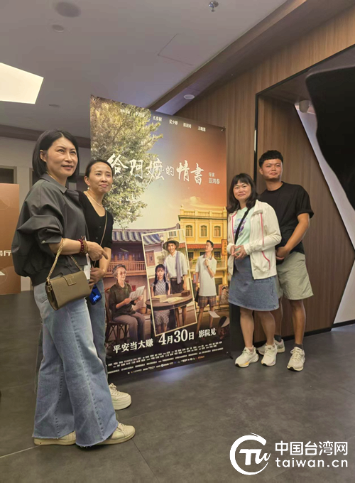 臺胞與《給阿嬤的情書》電影海報合影。(中國臺灣網發)