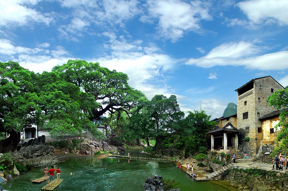 黃姚古鎮總面積為3.6平方公里,古鎮內300多間明清宅院,青磚黛瓦,飛檐畫棟,嶺南風格極其濃鬱。古街按九宮八卦陣勢布局,大街小巷均用青石板鋪砌而成,像一條起舞的青龍。