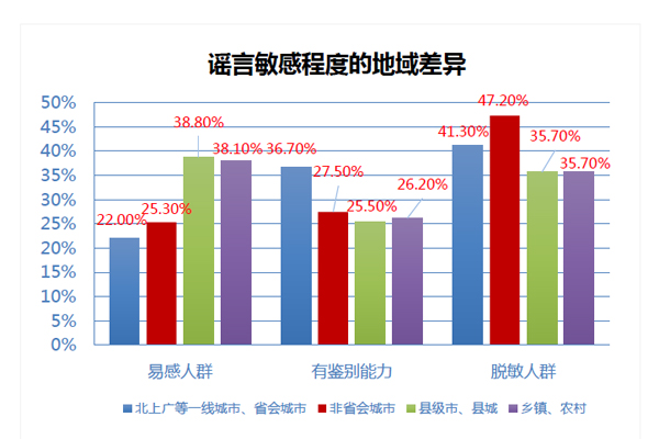 謠言敏感程度的地域差異圖表。(圖片來源:《2017年度食品藥品辟謠分析報告》)