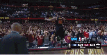 拿球,運一步,三分線外高高躍起,身體漂移著將球投出,在計時燈亮前,皮球劃過一道完美的弧線,空心入網!絕殺!詹姆斯興奮地跳上了技術臺,享受著全場球迷的歡呼,那一刻,他就是君臨天下的“皇帝”!