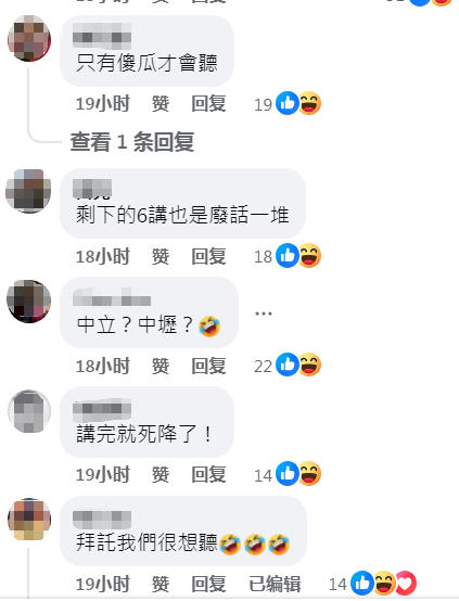 此言一出,立刻被藍白支持者瘋狂“點讚”。有社交平臺博主發文表示,“第一次認同暐瀚”,並嘲諷“團結十講”一直以來“成效良好”,讓庶民有感,每聽一講“團結感就上升10%”,“說好十講就必須講完”,“支持”。還有網友嘲諷,只講四講難怪(支持率)40%,等賴清德“十講”講完,(支持率)就100%了;甚至有網友懷疑,黃暐瀚是不是看風頭不對,開始當藍營的臥底了。