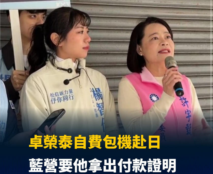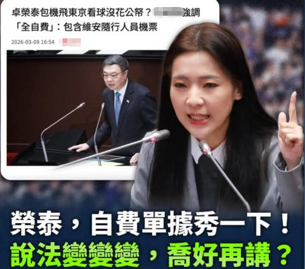 藍營追問卓榮泰“自費”憑證。(圖片取自臺媒)
