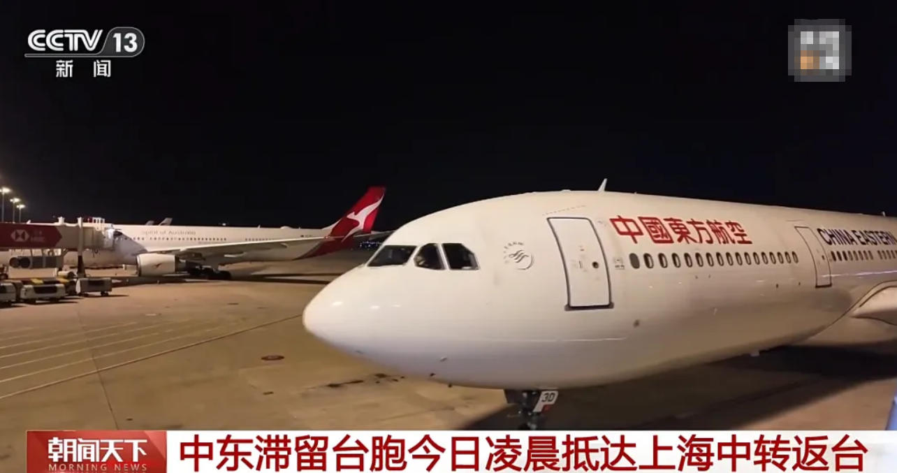 3月10日淩晨4時許,搭載70余名臺灣同胞的MU704航班平安抵達上海浦東國際機場。(圖為央視報道截圖)