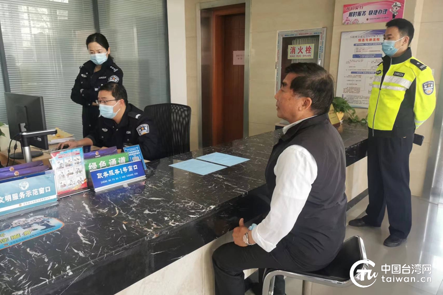 陳定國在寶應車管所辦理業務。(中國臺灣網發)