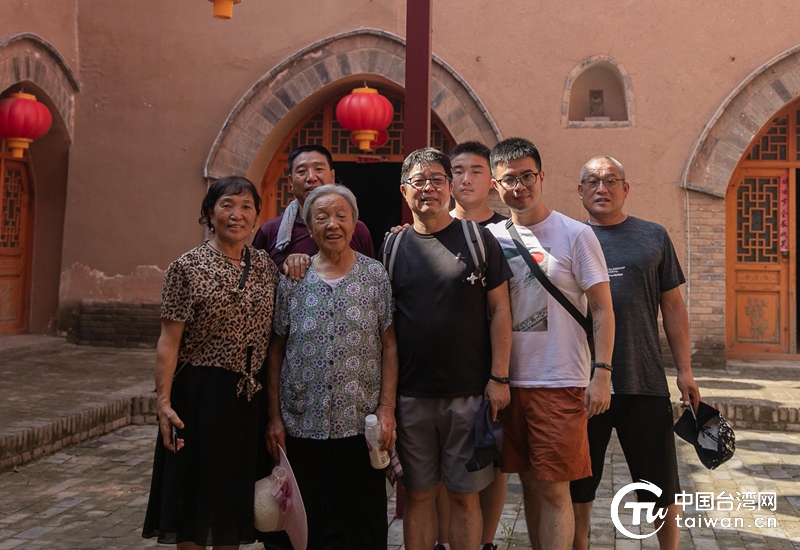 張毓中(右二)與河南家人于三門峽陜洲地坑院前合照。(圖片由作者提供 中國臺灣網發)