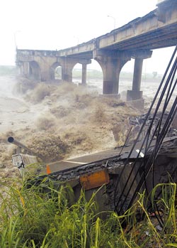 後豐大橋是臺中縣豐原市的交通要道,也是後里鄉民對外聯絡主要道路。前年9月因“森拉克”臺風來襲,橋墩被衝毀,橋面斷裂,有6人喪生,並獲賠償。