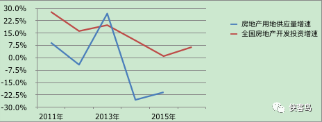 比如2013年,房地產用地同比增26.8%,到2015年,增速則大跌至-20.9%;供應量懸殊8萬公頃左右,增速懸殊將近47個百分點!沒有懸念,兩個年份的投資增速分別是19.8%和1%,各自大開大闔。
